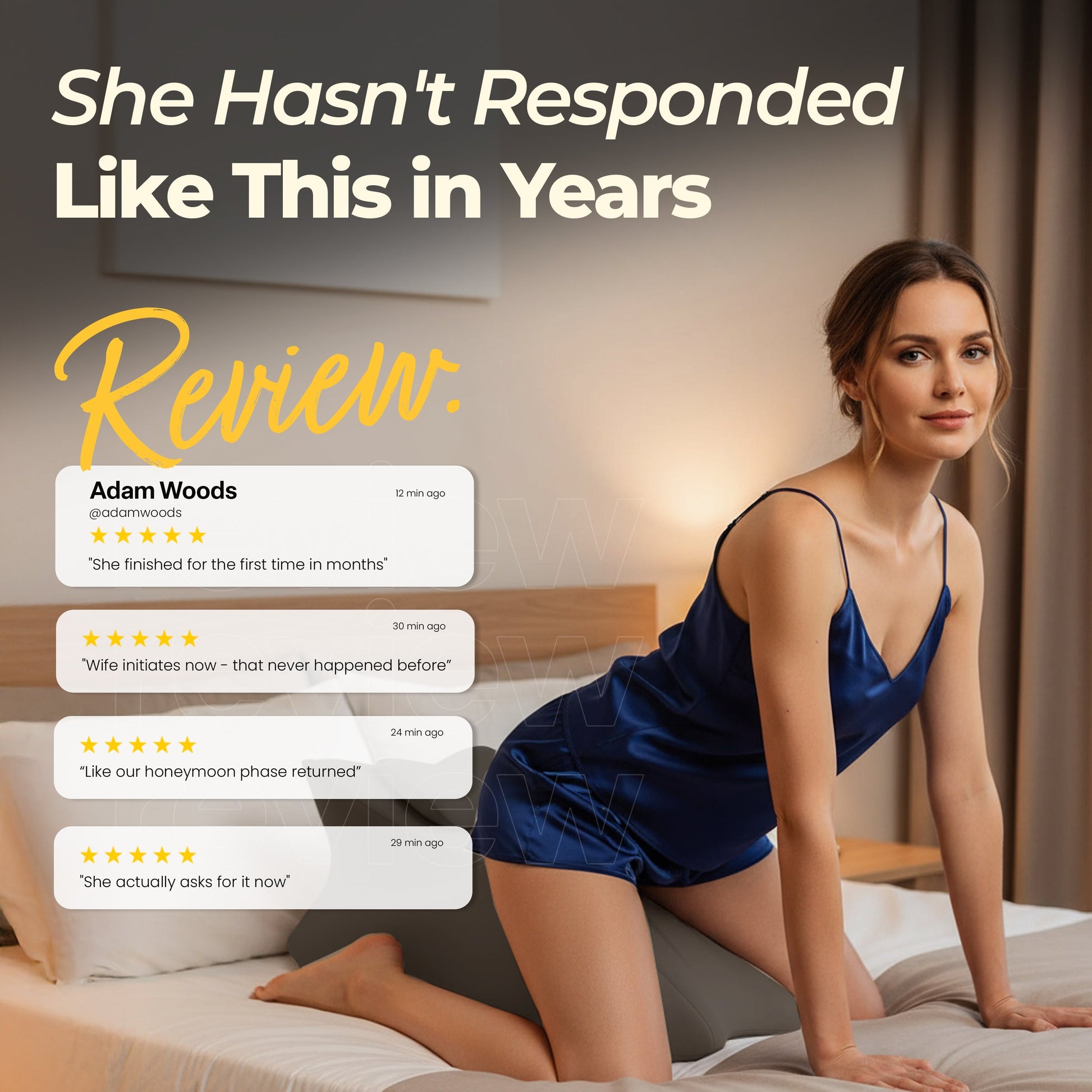 Discreet Aesthetic Elegant design blends seamlessly into any bedroom decor—no one will know it's an intimacy enhancer unless you tell them.